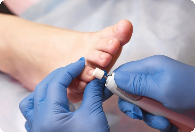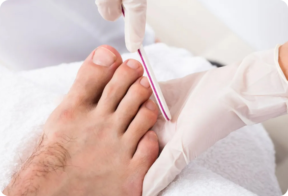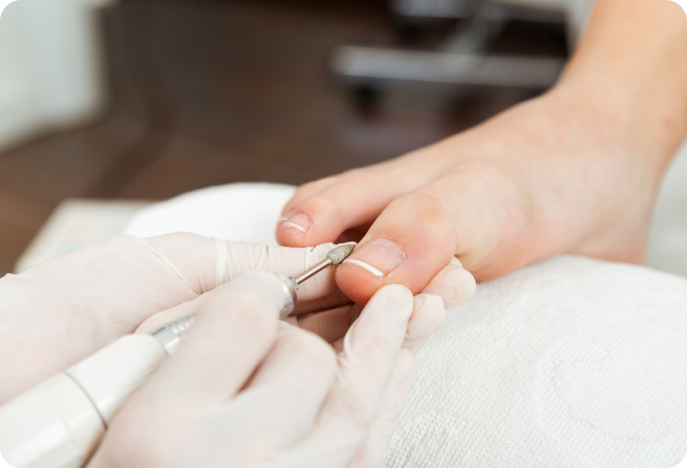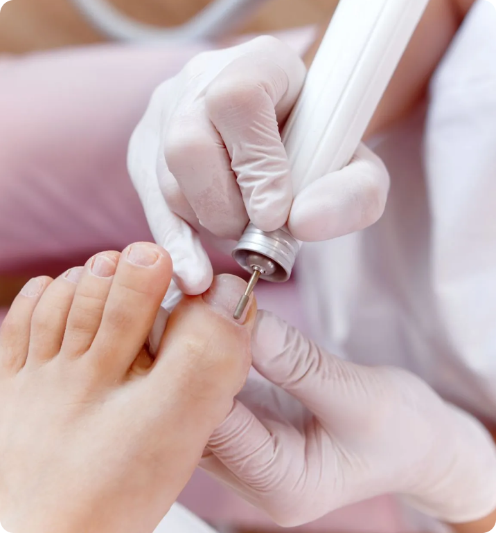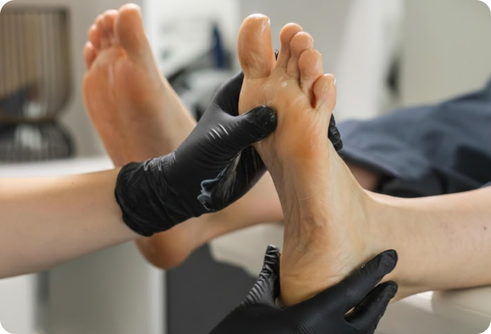A gentle, non-cosmetic pedicure focused on nail health, skin integrity, and infection prevention — performed using medical-grade sanitation protocols.