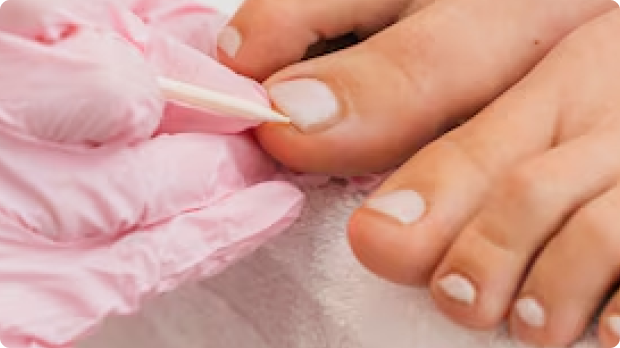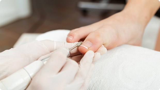 Relax in a heated massage recliner as your MNT analyzes your feet and conditions and safety of service. Your MNT will then prep the nail and apply a resin-based gel to reshape, lengthen, and smooth as needed.